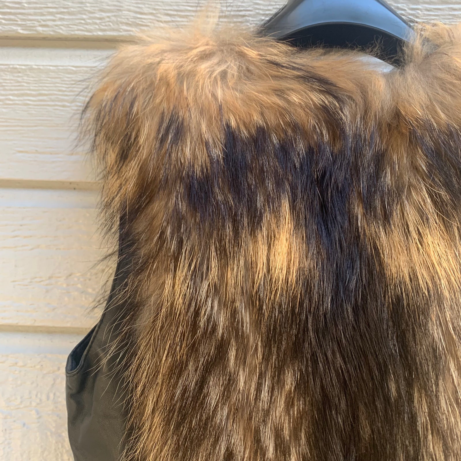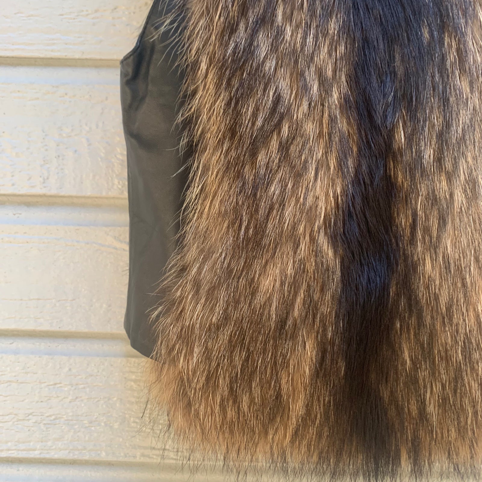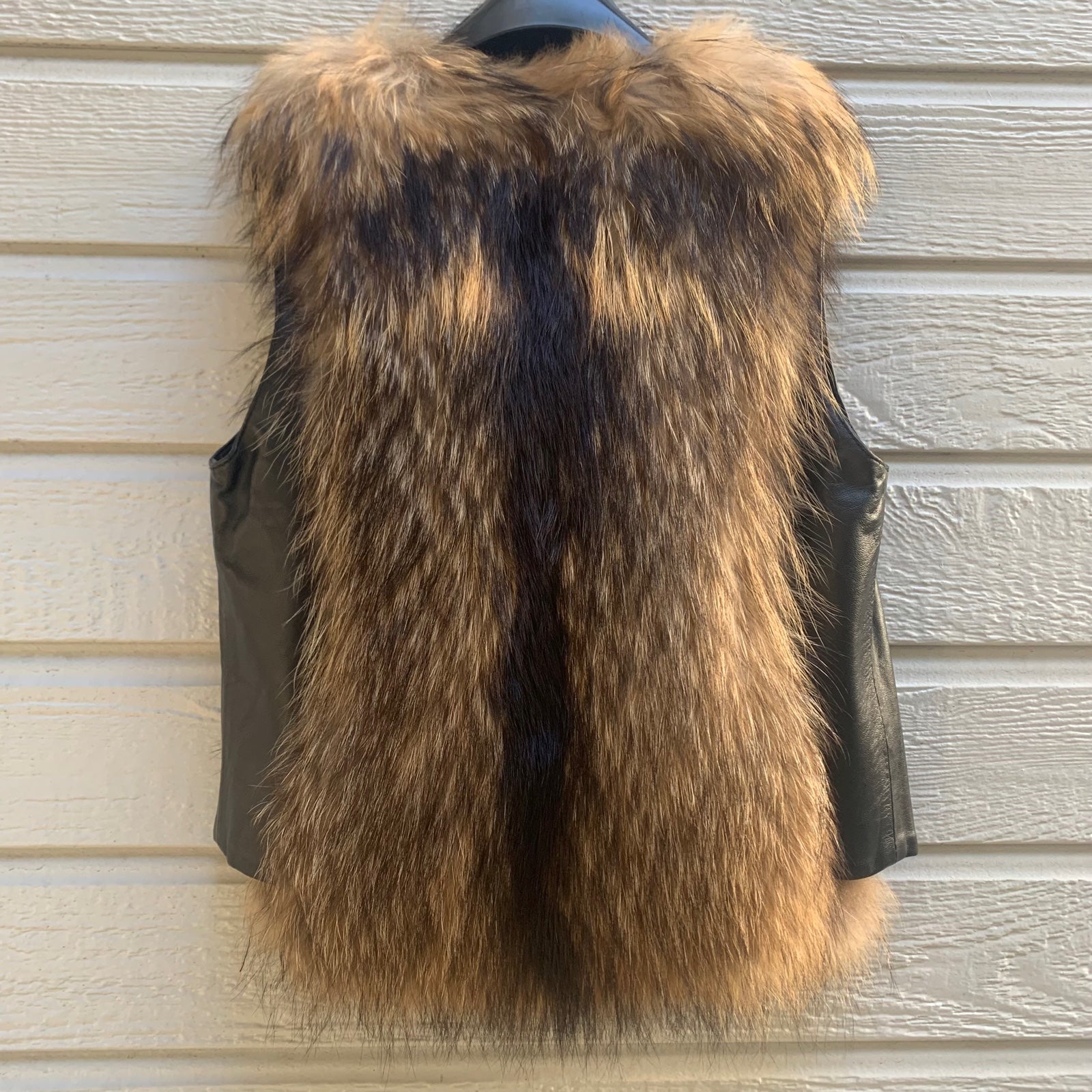 Real Genuine Authentic Asiatic Raccoon Fur & Leather Vest with 3 hook closures and inside pocket. Fur on front and back.