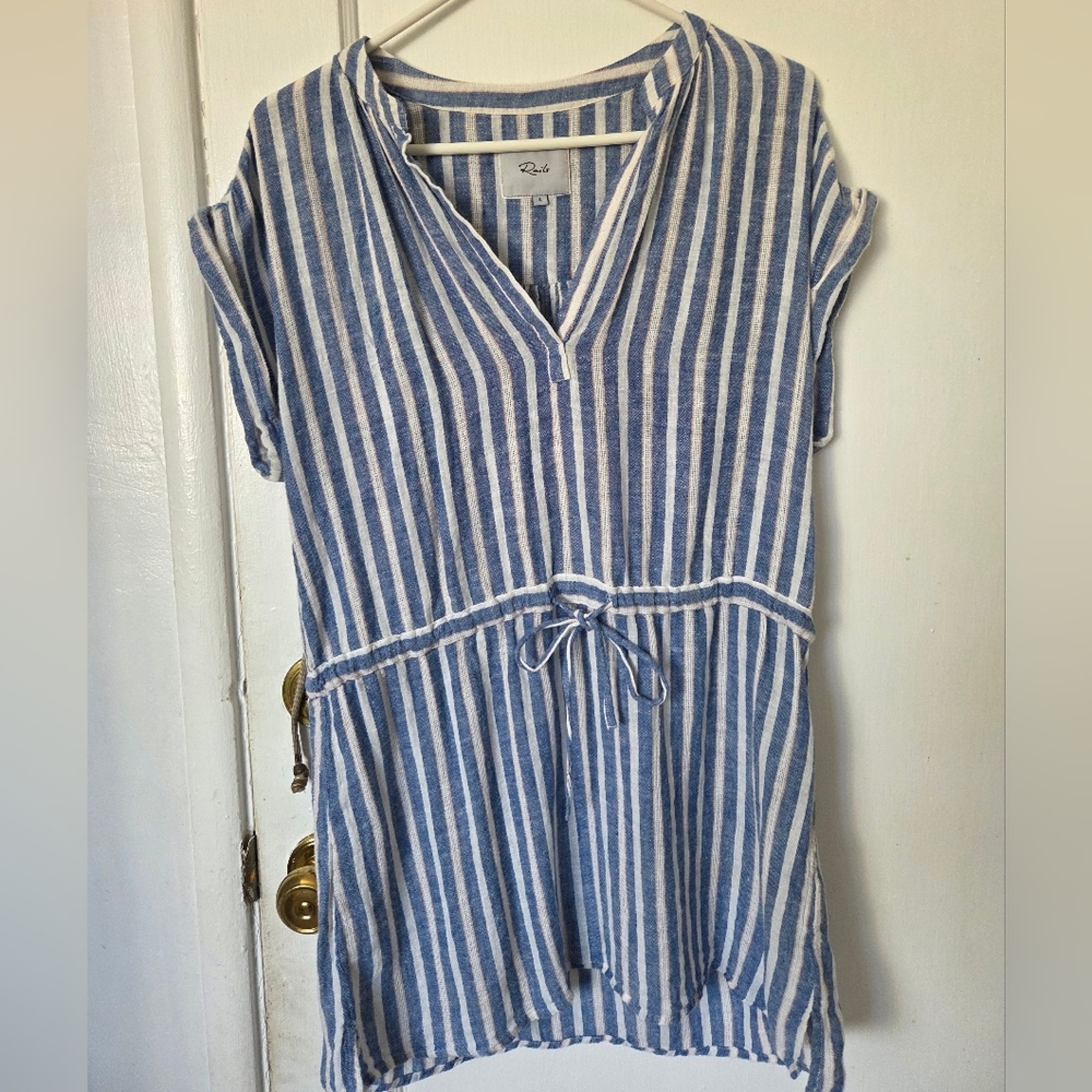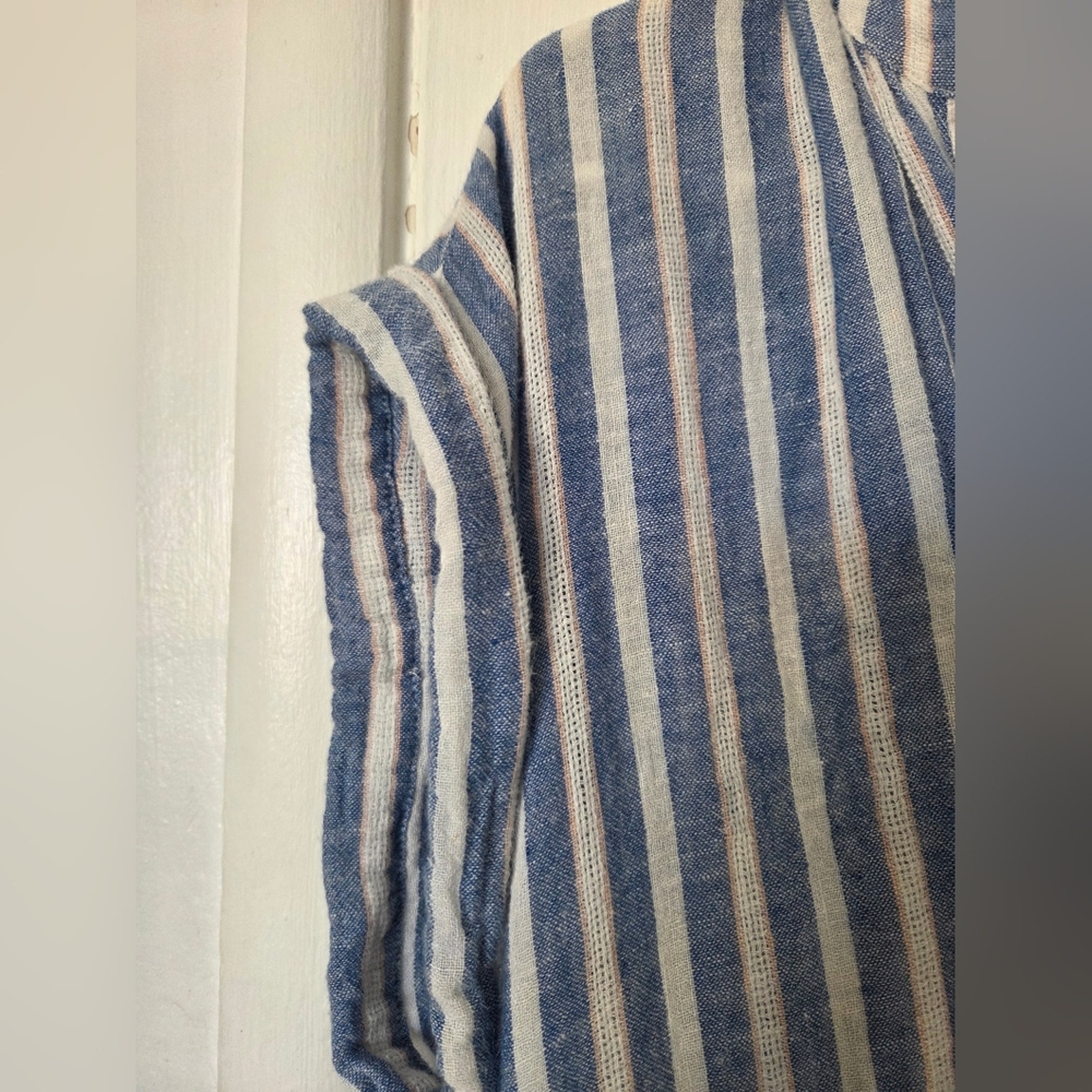 With forecasts warm and sunny, be ready in this striped blouson minidress with a breezy linen-blend weave and an anything-goes relaxed fit.